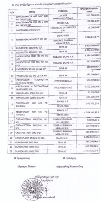 Ιδού και ο σχετικός πίνακας από τα έγγραφά της Επιτροπής Προμηθειών του υπουργείου Υγείας:
