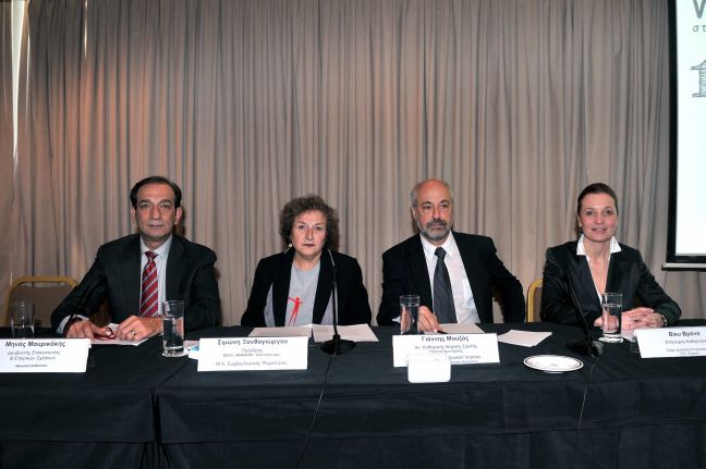 Το πάνελ της παρουσίασης των αποτελεσμάτων της 1ης Πανελλήνιας Έρευνας Γνώσης για το Αλκοόλ (από αριστερά): κος Μηνάς Μαυρικάκης Διευθυντής Επικοινωνίας και Εταιρικών Σχέσεων της Αθηναϊκής Ζυθοποιίας Α.Ε.