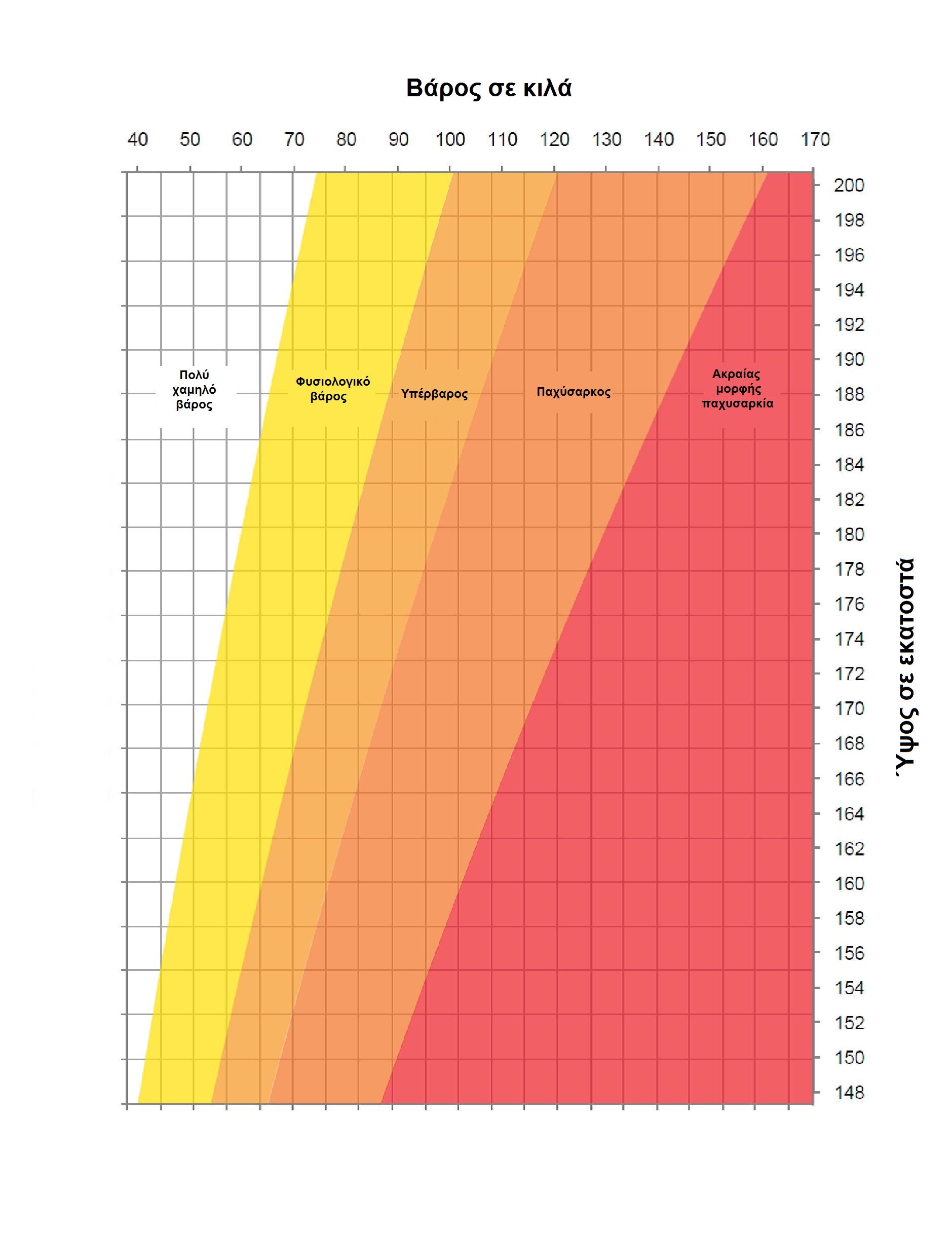 Κοιτάζοντας τον παρακάτω πίνακα, θα δείτε αναλυτικά ποιο είναι το ιδανικό βάρος ανάλογα με το ύψος σας. Επίσης, ο πίνακας παρουσιάζει αν η αντιστοιχία ύψους και βάρους ξεπερνά λίγο ή υπερβολικά το φυσιολογικό.