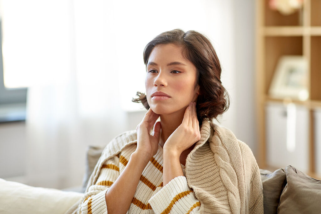 Ψηλάφηση λεμφαδένων με τα δάχτυλα γύρω από το λαιμό