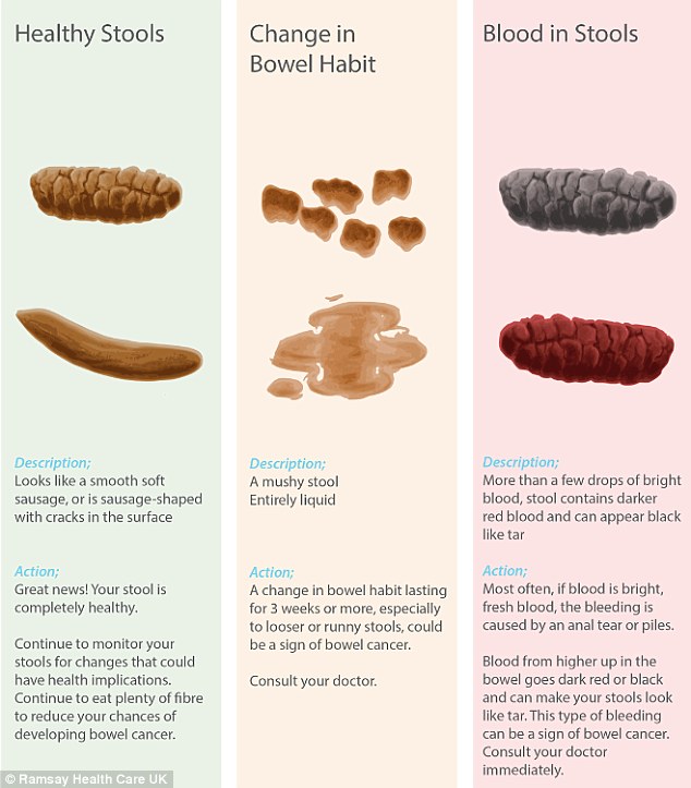 Οι πρώτες ενδείξεις για τον ορθοκολικό καρκίνο εντοπίζονται συνήθως στα κόπρανα, οπότε το γράφημα σχεδιάστηκε για να αποτελέσει έναν απλό οδηγό για τα κύρια συμπτώματα της νόσου.