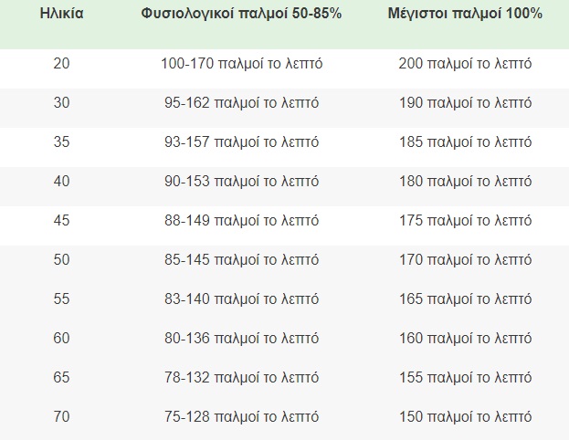 Δείτε τον αναλυτικό πίνακα ανά ηλικία, σύμφωνα με την Αμερικανική Ένωση Καρδιολογίας (AHA):
