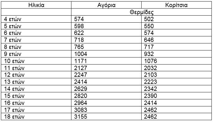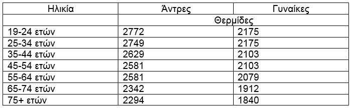 Να σημειωθεί ότι οι τιμές για τους ενήλικες αφορούν άτομα με υγιές βάρος που κάνουν καθημερινά μέτριας έντασης σωματική άσκηση.