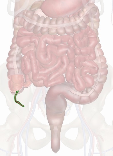 Βρίσκεται στο κατώτατο άκρο του παχέος εντέρου. Όταν εκδηλώνεται φλεγμονή στο σημείο αυτό, πρόκειται για τη γνωστή σκωληκοειδίτιδα.