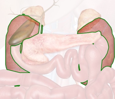 Βρίσκεται ανάμεσα στα νεφρά και επάνω από το λεπτό έντερο. Αριστερά του βρίσκεται η χοληδόχος κύστη και δεξιά του το στομάχι.