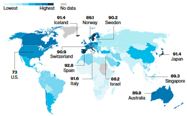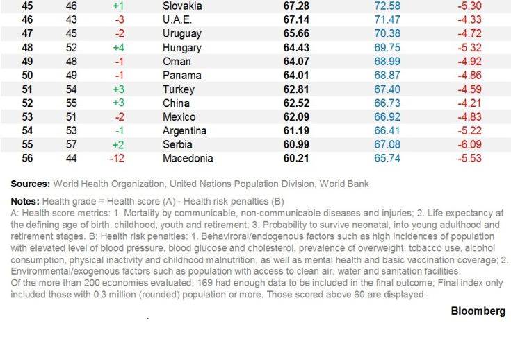 Ο δείκτης υγείας βαθμολογεί τις χώρες με βάση συγκεκριμένες μεταβλητές, όπως το προσδόκιμο ζωής, ενώ αφαιρεί μονάδες για πράγματα όπως το κάπνισμα και η παχυσαρκία. Επίσης, λαμβάνει υπόψη παράγοντες όπως της πρόσβασης σε καθαρό νερό και η αποχέτευση.